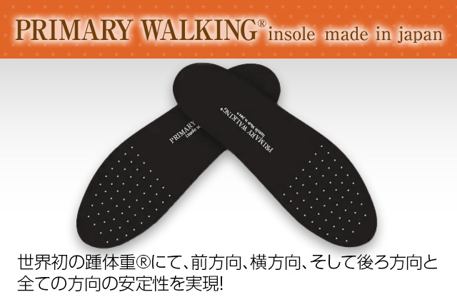 また、特許申請中の技術により歩行時の快適性も両立! 立つという安定性と歩くという不安定性の矛盾を解決した、プライマリーウォーキング®インソールが誕生しました。